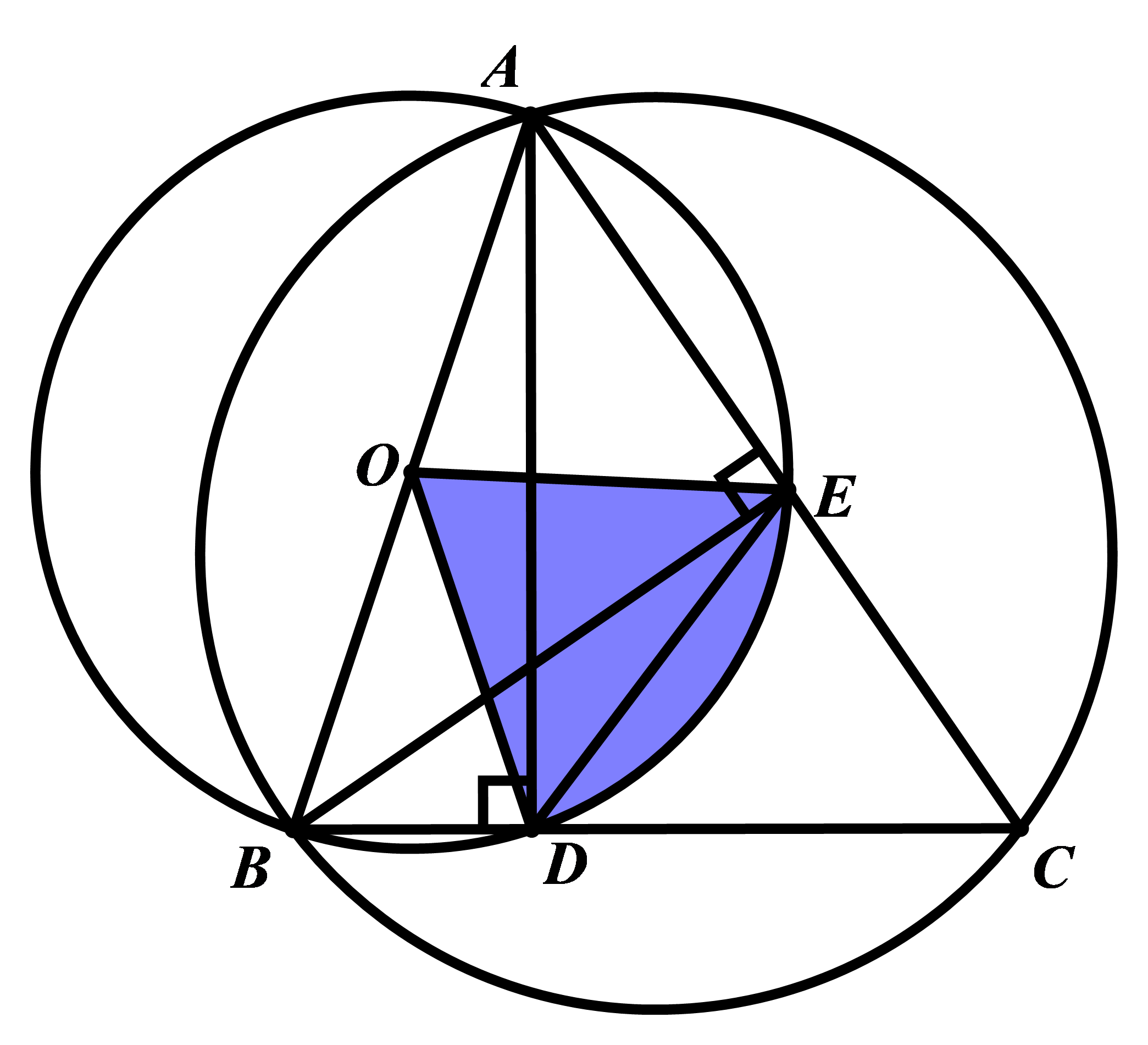 3) Giả sử \(\angle ACB = {60^0}\) và AB = 6cm. Tính diện tích hình quạt tròn giới hạn bởi hai bán kính OD, OE và cung nhỏ DE của đường tròn (O).
