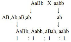 Menđen đem lai cơ thể thứ nhất ( AaBb) với cơ thể thứ 2 ( aabb) kết quả thu được ở F1 như thế nào?