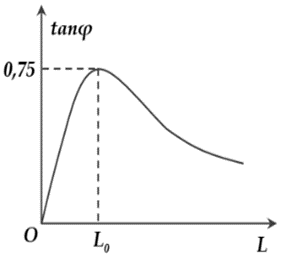 Đặt điện áp \(u = {U_0}\cos 100\pi t\,\,\left( V \right)\) vào hai đầu đoạn mạch AB gồm điện trở thuần R mắc nối tiếp với cuộn dây có điện trở \(r = 50\Omega \), hệ số tự cảm L thay đổi được. Điện áp tức thời giữa hai đầu cuộn dây và hai đầu đoạn mạch AB lệch pha nhau góc \(\varphi \). Hình bên biểu diễn sự phụ thuộc của \(\tan \varphi \) theo L. Giá trị của \({L_0}\) là