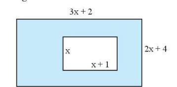 Hãy lập biểu thức có dạng đa thức theo biến x biểu thị diện tích phần được tô đậm trong hình.