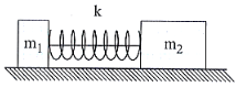 Cho hệ vật như hình vẽ. Ban đầu hai vật được giữ sao cho lò xo bị nén một đoạn 10,0 cm (lò xo nhẹ và không gắn vào vật) sau đó đốt sợi dây nối hai vật. Biết độ cứng của lò xo k = 45,0 N/m; \({m_1} = 0,50kg\); \({m_2} = 1,50kg\). Bỏ qua lực ma sát và lực cản của không khí tác dụng lên các vật. Tính gia tốc của mỗi vật ngay sau khi sợi dây đứt.
