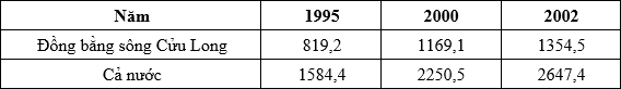 Cho bảng số liệu:Sản lượng thủy sản ở ĐBSCL (nghìn tấn)Vẽ biểu đồ cột thể hiện sản