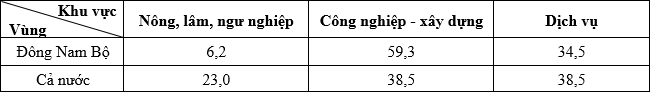 Cho bảng số liệu: Cơ cấu kinh tế của Đông Nam Bộ và cả nước năm 2002 (%) Vẽ biểu đồ