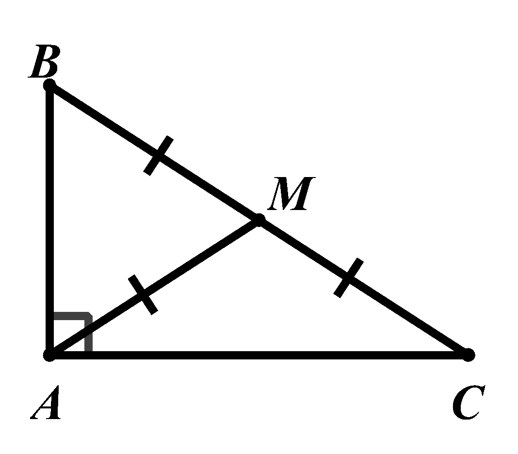 AM là đường trung tuyến ứng với cạnh huyền BC nên \(AM = \dfrac{1}{2}BC\)