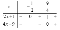 d) \(D = \left| {2x + 1} \right| + \left| {4x - 9} \right|\)