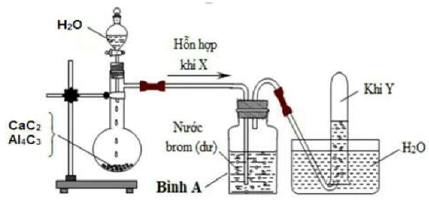 Hình vẽ sau đây mô tả thí nghiệm điều chế khí Y từ hỗn hợp rắn gồm CaC2 và Al4C3:Khí Y