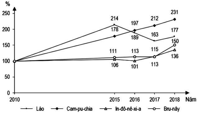 Theo biểu đồ, nhận xét nào sau đây đúng với tốc độ tăng trưởng giá trị nhập khẩu của một số quốc gia năm 2018 so với 2010?