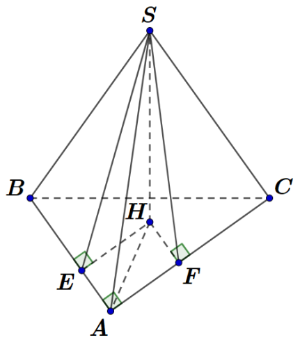 Cho hình chóp S.ABC có đáy là tam giác vuông tại A và \(AB = \sqrt 3 ,\,\,AC = \sqrt 7 ,\,\,SA = 1\). Hai mặt bên (SAB) và (SAC) lần lượt tạo với mặt đáy các góc 450 và 600. Thể tích của khối chóp đã cho bằng: