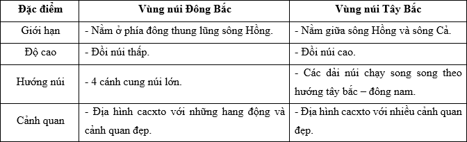 So sánh sự khác nhau về địa hình vùng núi Đông Bắc Bắc Bộ và vùng núi Tây Bắc Bắc Bộ ở