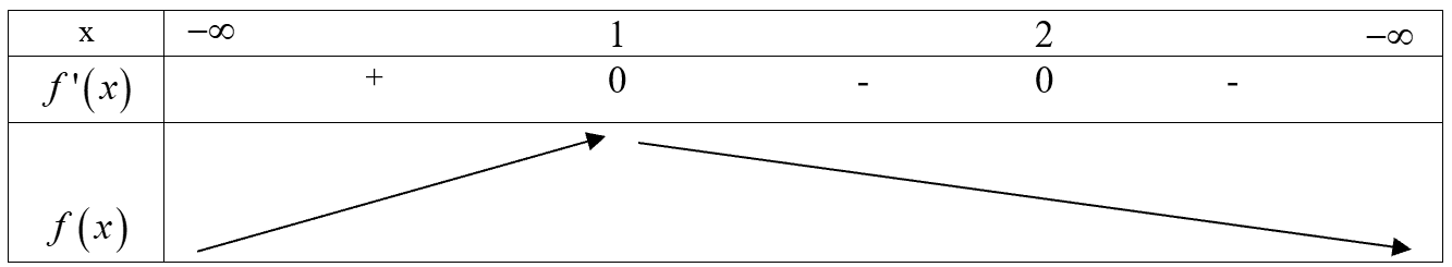Cho hàm số y = f(x) có đạo hàm \({f^\prime }(x) = {(x - 2)^2}(1 - x)\) với mọi \(x \in \mathbb{R}\). Hàm