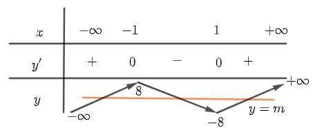 Có bao nhiêu giá trị nguyên của tham số m để hàm số \(y = - {x^4} + 6{x^2} + mx\) có ba điểm cực trị?