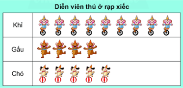 Quan sát và so sánh số lượng các loại diễn viên thú.
