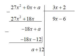 Xác định a để đa thức \(27{x^2} + a\) chia hết cho 3x + 2.