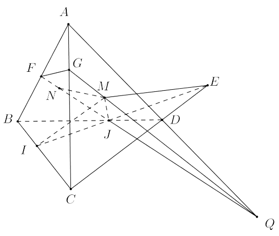Cho tứ diện ABCD và điểm M thuộc tam giác ACD. Gọi I và J lần lượt là 2 điểm trên cạnh BC và
