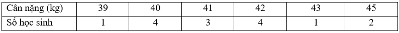 Bảng thống kê về cân nặng (theo đơn vị kilogam) của 15 học sinh lớp 6 như sau: