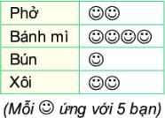 Biểu đồ tranh ở bên cho biết món ăn sáng yêu thích của các bạn trong lớp. Có bao nhiêu bạn trong lớp thích món xôi?