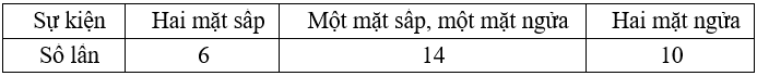 Tung hai đồng xu cân đối và đồng chất 30 lần ta được kết quả như bảng dưới đây: