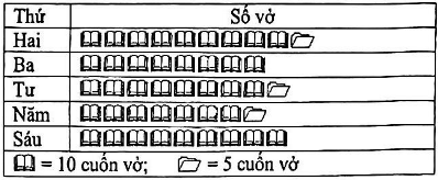Biểu đồ tranh dưới đây cho biết số cuốn vở đã bán được từ thứ hai đến thứ sáu của một cửa hàng sách.