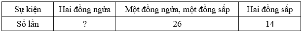 Tung hai đồng xu cân đối 50 lần, bạn An được kết quả dưới đây, trong đó bạn quên không điền thống kê số lần cả hai đồng xu cùng xuất hiện mặt ngửa: