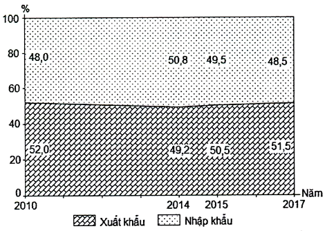 Cho biểu đồ về xuất nhập khẩu hàng hóa và dịch vụ của In-đô-nê-xi-a giai đoạn 2010 - 2017:
