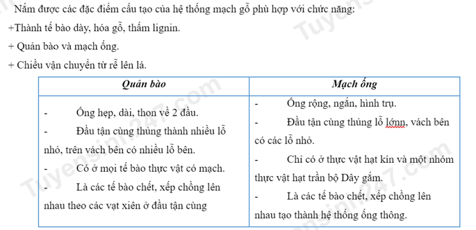 1. Các tế bào nối đầu với nhau thành ống dài đi từ lá xuống rễ.