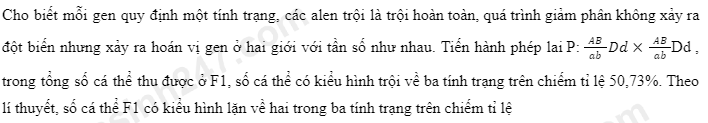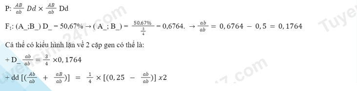Áp dụng các công thức tính tỉ lệ kiểu hình qua 1 thế hệ.