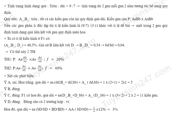 Bước 2: Từ tỉ lệ kiểu hình đề cho, phân tích tỉ lệ, xét các trường hợp có thể xảy ra.