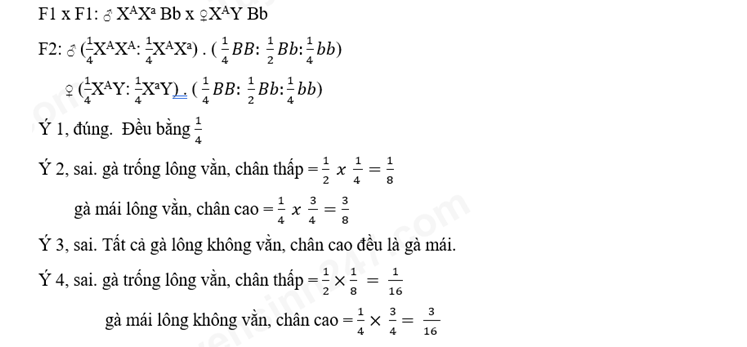 I. Tỉ lệ gà mái lông vằn, chân thấp bằng tỉ lệ gà mái lông không vằn, chân thấp.