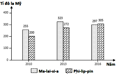 Nhận xét nào sau đây đúng GDP của Ma-lai-xi-a và Phi-lip-pin giai đoạn 2010-2016?