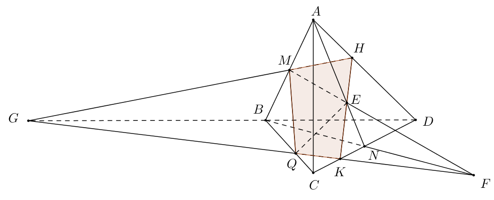 c) Tìm thiết diện cắt tứ diện bởi mặt phẳng (EMQ).
