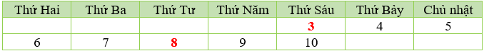 Nếu ngày 8 tháng 3 là thứ Tư thì ngày 3 tháng 3 cùng năm đó là thứ mấy?