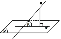 Góc giữa đường thẳng \(a\) và mặt phẳng \(\left( P \right)\) là góc giữa đường thẳng \(a\) và \(a'\).