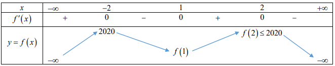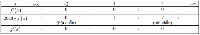 Lập bảng xét dấu đạo hàm của hàm số\(g\left( x \right) = {\left[ {2020 - f\left( x \right)} \right]^2}\).