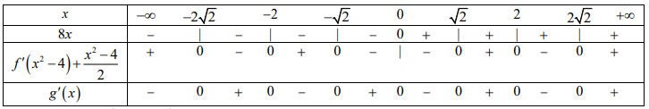 Từ đó kết luận số cực tiểu của hàm số \(g\left( x \right) = 4f\left( {{x^2} - 4} \right) + {x^4} - 8{x^2}\).