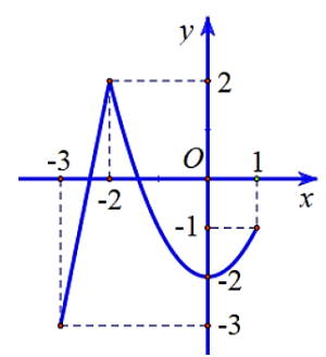 Cho hàm số y = f(x) liên tục trên đoạn [-3;1] và có đồ thị như hình vẽ. Trên đoạn [−3;1]