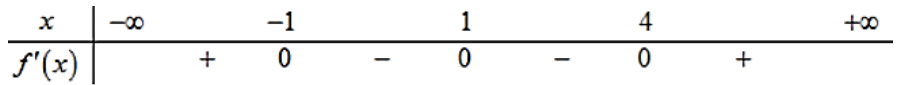 Cho hàm số y = f(x) iên tục trên \(\mathbb{R}\) và có bảng xét dấu f’(x) như hình vẽ