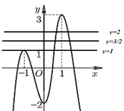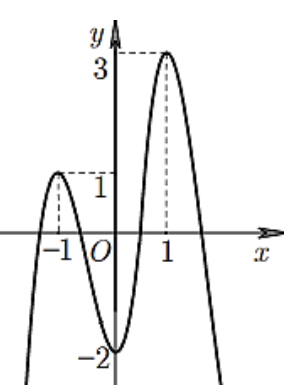 Dựa vào đồ thị hàm số xác định các điểm cực trị và suy ra nghiệm của phương trình f’(x) = 0.