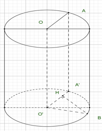 Cho hình trụ (T) có bán kính đáy \(r = \sqrt 6 \) và r = 6 chiều cao gấp đôi bán kính đáy. Gọi O và O’ lần lượt là tâm của hai đáy trụ. Trên đường tròn tâm O lấy điểm A, trên đường tròn tâm O’ lấy điểm B sao cho thể tích của tứ diện OO' AB lớn nhất. Tính AB?