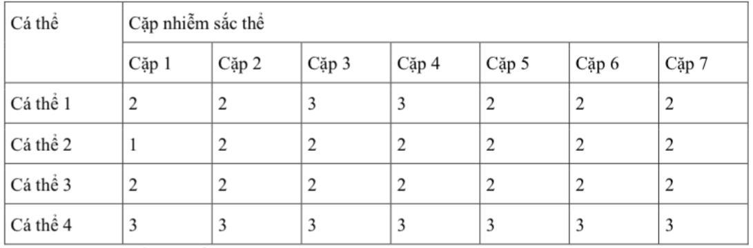 (1) Cá thể 1: là thể ba kép (2n+1+1) vì có 2 cặp đều thừa 1 NST.
