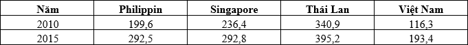 Cho bảng số liệu: TỔNG SẢN PHẨM TRONG NƯỚC CỦA MỘT SỐ QUỐC GIA, NĂM 2010 VÀ NĂM 2015 (Đơn