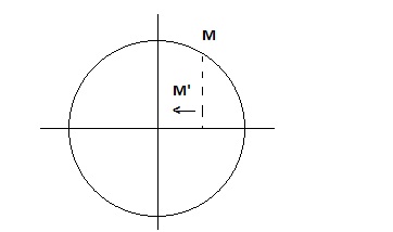 Một chất điểm M chuyển động với tốc độ 0,75 m/s trên đường tròn có đường kính bằng 0,5m. Hình chiếu M’ của điểm M lên đường kính của đường tròn dao động điều hoà. Tại t = 0s, M’ đi qua vị trí cân bằng theo chiều âm. Khi t = 8s hình chiếu M’ qua li độ: