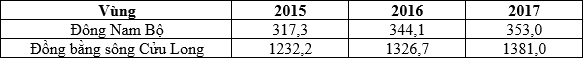 b. Qua biểu đồ đã vẽ, nhận xét sản lượng thủy sản khai thác của Đông Nam Bộ và Đồng bằng sông Cửu Long giai đoạn 2015 - 2017.
