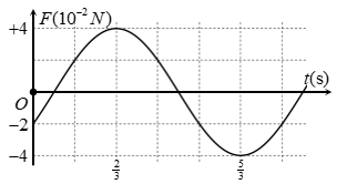 Một vật có khối lượng m = 100 g dao động điều hòa theo phương trình có dạng \(x = A\cos \left( {\omega t + \varphi } \right)\). Biết đồ thị lực kéo về \(F\left( t \right)\) biến thiên theo thời gian như hình vẽ. Lấy \({\pi ^2} = 10\). Phương trình vận tốc của vật là