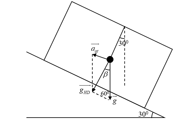 Gia tốc hiệu dụng của con lắc đơn trong hệ quy chiếu phi quán tính: \(\overrightarrow {{g_{HD}}} = \overrightarrow g + \overrightarrow {{a_{qt}}} \)