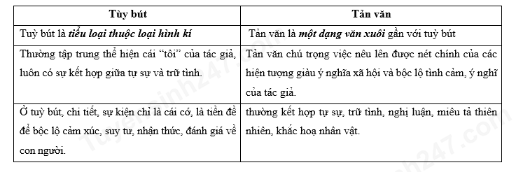 Dựa vào kiến thức đã học, em hãy phân biệt tản văn và tùy bút.