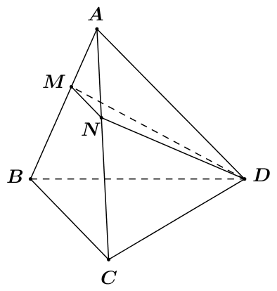 Cho tứ diện ABCD. Trên AB và AC lần lượt lấy hai điểm M và N sao cho \(\dfrac{{AM}}{{AB}} =