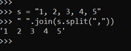 Cho xâu s = “1, 2, 3, 4, 5”. Muốn xoá bỏ kí tự “,” và thay thế bằng dấu “ ” ta sử dụng