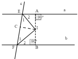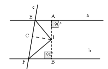 Cho hai đường thẳng song song a, b và một đường thẳng c (c cắt a tại E, cắt b tại F). Hai tia phân giác của các góc aEF và bFE cắt nhau tại I. Gọi A, B lần lượt là hình chiếu của I lên các đường thẳng a và b.Chứng minh:
