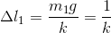 Một vật treo vào lò xo có khối lượng không đáng kể, chiều dài tự nhiên l0, độ cứng k, treo thẳng đứng vào vật m1 = 100g vào lò xo thì chiều dài của nó là 31 cm. treo thêm vật m2 = 100g vào lò xo thì chiều dài của lò xo là 32cm. Cho g = 10 m/s2, độ cứng của lò xo là: