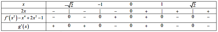 Khảo sát hàm số \(g\left( x \right) = f\left( {{x^2}} \right) - \dfrac{{{x^6}}}{3} + {x^4} - {x^2}\).